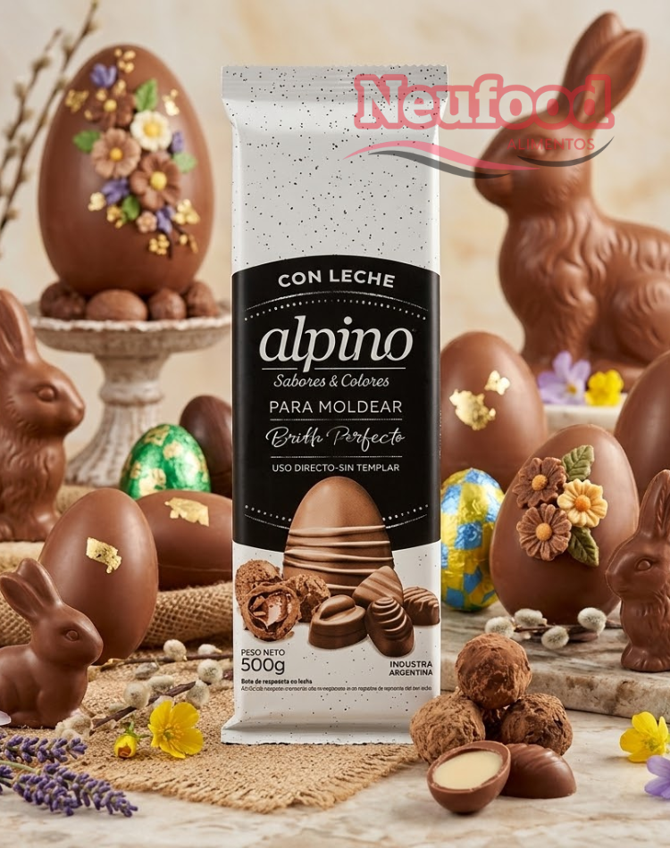 El baño de moldeo con leche Alpino es una cobertura ideal para repostería y chocolatería, especialmente formulada para lograr terminaciones brillantes, lisas y de excelente sabor. Es una opción práctica y económica para quienes buscan resultados profesionales sin necesidad de templado.