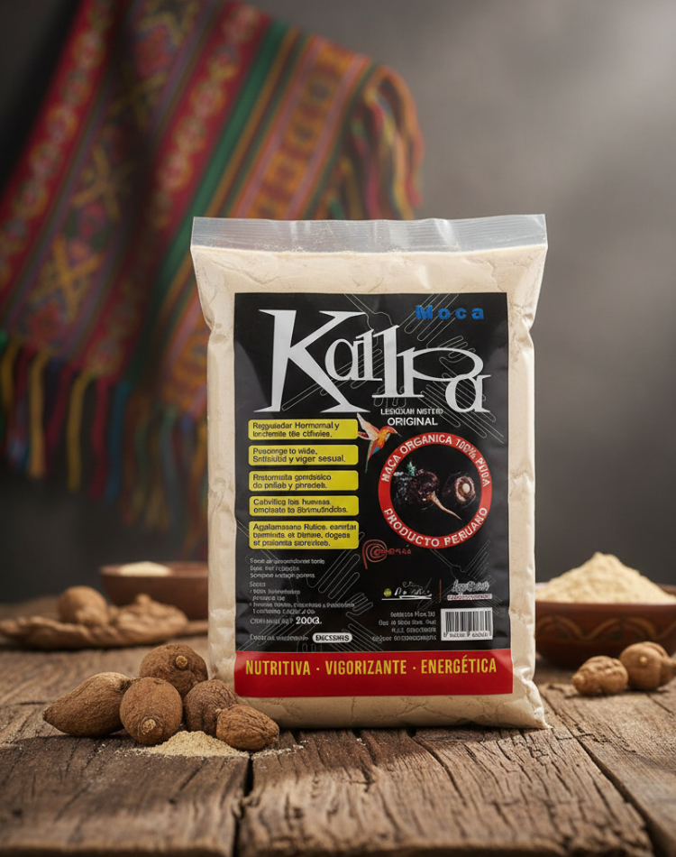 Raíz andina en polvo, reconocida por ayudar a mejorar la energía, la vitalidad y el rendimiento físico y mental. Ideal para sumar a licuados, yogures o recetas saludables.