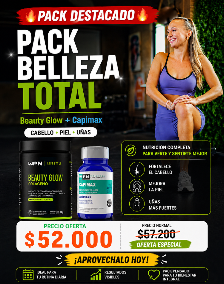 Beauty Glow Colágeno fue desarrollado para potenciar la belleza y vitalidad de la piel, el cabello y las uñas desde el interior. Su fórmula combina ingredientes antioxidantes, hidratantes y regeneradores que actúan en conjunto para mejorar la elasticidad y firmeza de la piel, favorecer la microcirculación, proteger del envejecimiento prematuro y aportar luminosidad. Ideal para quienes buscan mantener una piel saludable y radiante cada día.