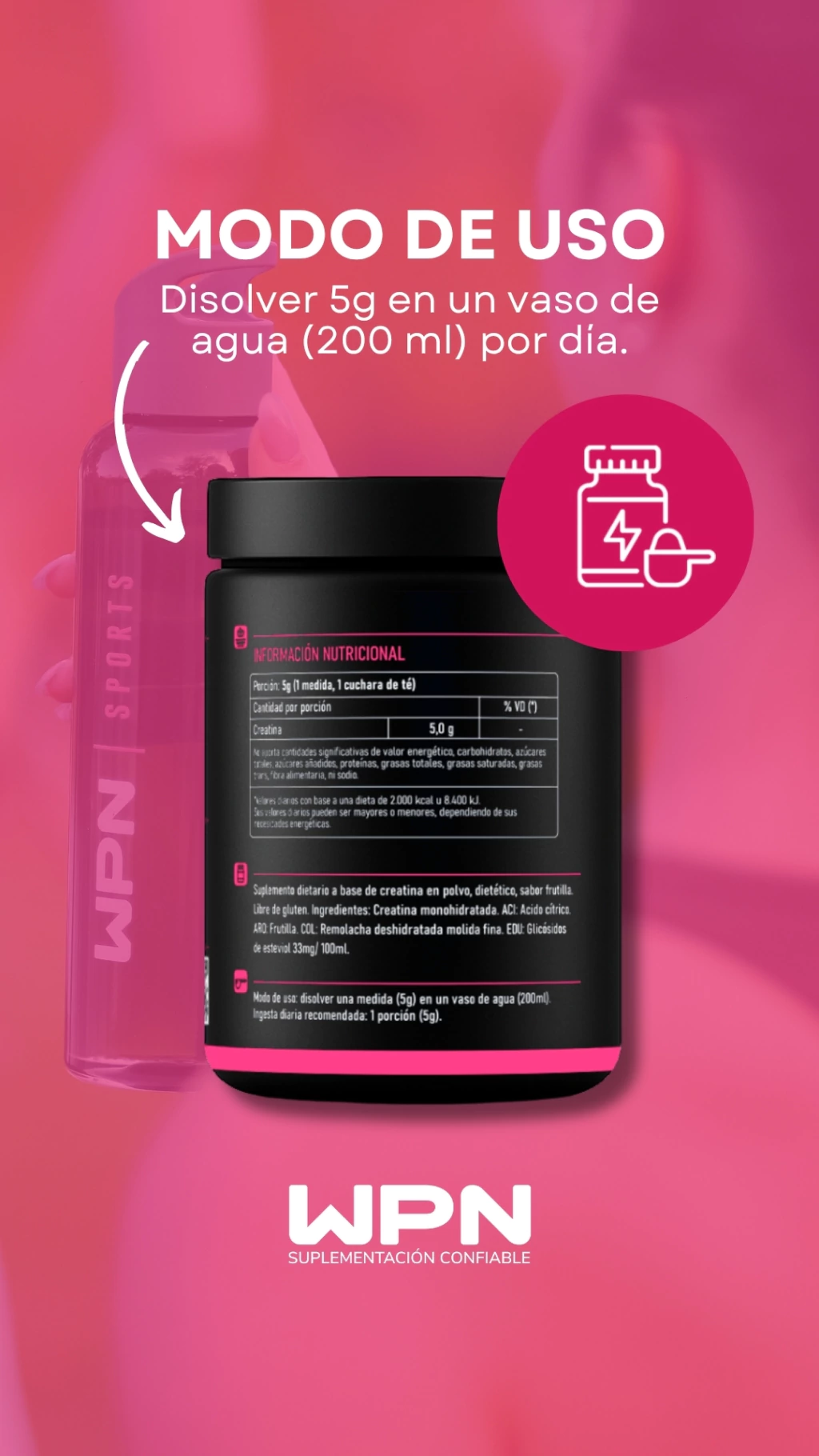 Creatina Monohidrato: favorece la producción de energía muscular, mejora la fuerza y ayuda a incrementar el rendimiento en ejercicios de alta intensidad.