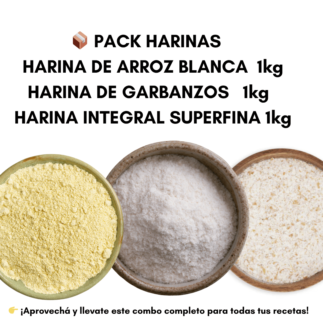 PACK HARINAS : HARINA DE ARROZ 1 KG. +HARINA INT. SUPERFINA 1 KG. +HARINA DE GARBANZOS