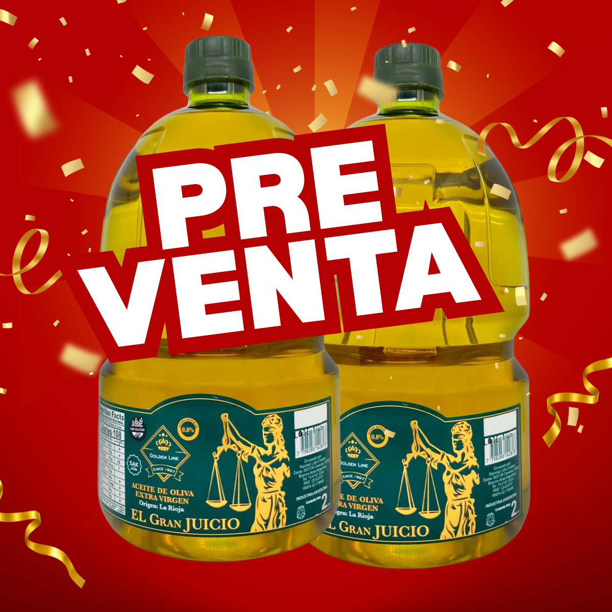 PREVENTA POR REINGRESO *ACEITE DE OLIVA EXTRA VIRGEN PACK X 2 BIDONES DE 2LTS – EL GRAN JUICIO