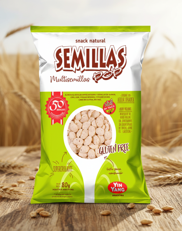 Cereal inflado a base de semillas de quinoa, lino, chía, sésamo integral y sésamo negro. Tienen textura crujiente y sabor levemente dulce; ideales para meriendas, desayunos y colaciones. Para consumir solas, con yogur o leche, barritas de cereal, o procesadas para galletas o masas de tartas dulces.