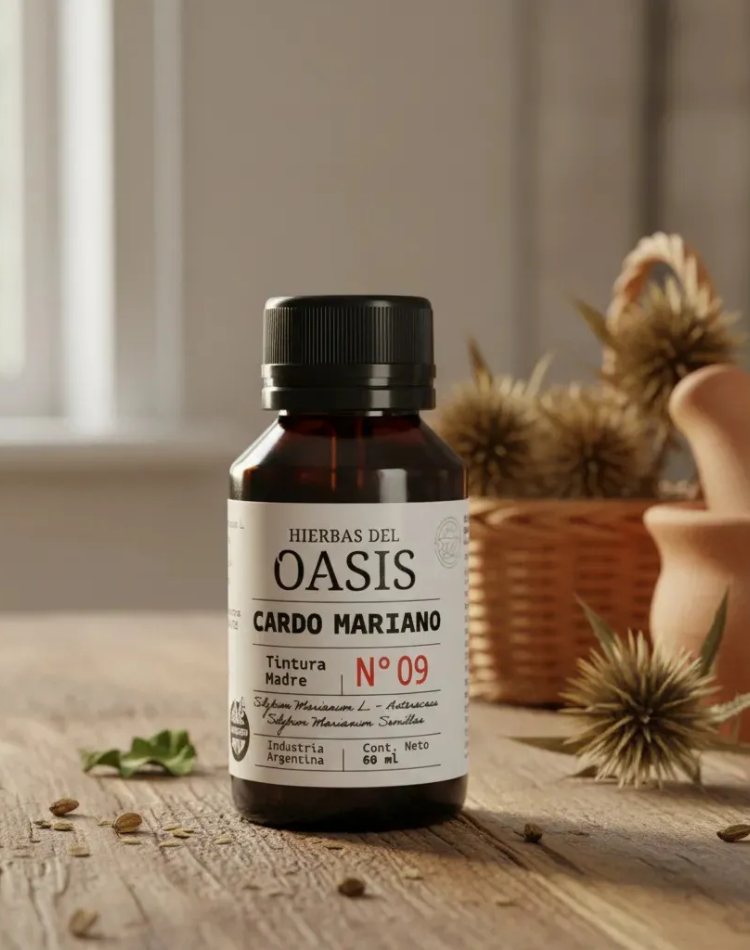 TINTURA MADRE CARDO MARIANO X 60 C.C. – HIERBAS DEL OASIS. SIN TACC. Una nutrición balanceada juega un papel fundamental en la calidad de vida. Con el ritmo acelerado que llevan muchas personas, a veces resulta complejo prestar atención a todos los requerimientos que el cuerpo necesita para estar sano y fuerte. En ese sentido, los suplementos cumplen la función de complementar la alimentación y ayudan a obtener las vitaminas, minerales, proteínas y otros componentes indispensables para el correcto funcionamiento del organismo. Beneficios Principales: Salud Hepática: Estimula la regeneración de las células del hígado y ayuda en el tratamiento de afecciones como el hígado graso, la cirrosis y la inflamación hepática. Apoyo Digestivo: Favorece la secreción de bilis, lo que ayuda a reducir la hinchazón después de las comidas y mejora la digestión de las grasas. Acción Antioxidante: Combate los radicales libres y previene la oxidación de grasas y proteínas en el cuerpo. Control Metabólico: Algunos estudios sugieren que ayuda a reducir niveles de colesterol y puede contribuir al control de la diabetes tipo 2 al influir en los niveles de azúcar en sangre. Salud de la Piel: Gracias a sus efectos desinflamatorios y antioxidantes, promueve una piel más sana. *Este producto es un suplemento dietario, no es un medicamento. Suplementa dietas insuficientes. Consulte a su médico y/o farmacéutico. Aviso legal • Edad mínima recomendada: 12 años. • Este producto es un suplemento dietario, no es un medicamento. Suplementa dietas insuficientes. Consulte a su médico y/o farmacéutico.